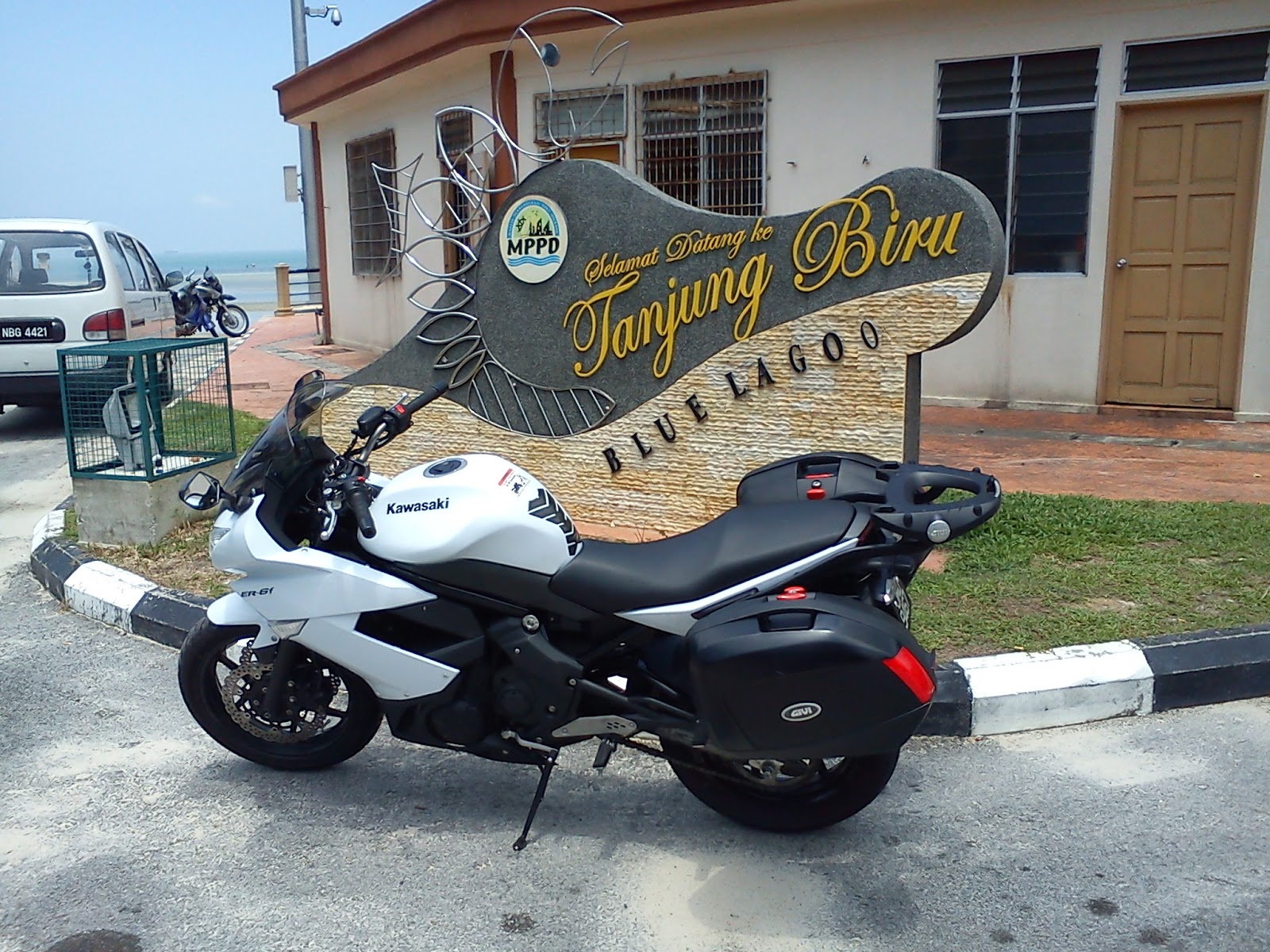 Tongkat motor jap kat pantai Teluk Kemang untuk bergambo kenangan